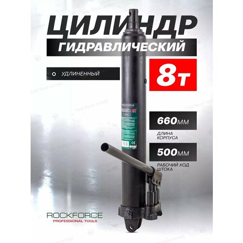 Цилиндр гидравлический удлиненный с насосом от бренда ROCKFORCE способен развивать полезное усилие до 8 тонн. Длина корпуса 660мм, рабочий ход штока 500мм.