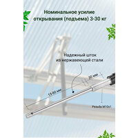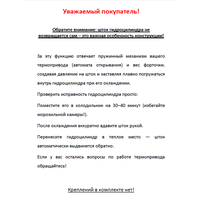 Технические характеристики термопривода: - Диаметр штока: 6 мм - Материал штока: хромированная сталь - Размеры гидроцилиндра (без штока): 250 х 15 х 15 мм - Длина гидроцилиндра со штоком: 333 мм - Температура начала открывания: +22 °С - Температура полного открытия: +26 °С - Ход штока при t (+22…+26 °С): не менее 50 мм - Усилие закрывания: не менее 3 кг