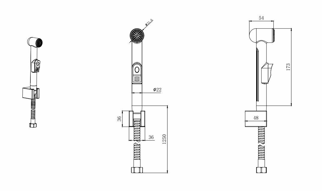 Гигиенический душ Aquatek AQ2050MB, со смесителем, 1 режим, с кнопкой, черный
