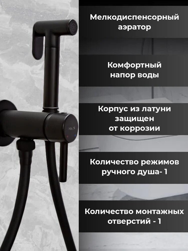 Обновите вашу ванную комнату с помощью гигиенического душа для унитаза со смесителем в стильном черном матовом исполнении. Этот современный душ гигиенический не только добавит элегантности вашему интерьеру, но и значительно повысит уровень гигиены в вашей ванной комнате. Гигиенический душ — это идеальное решение для тех, кто ценит комфорт и чистоту. Его длина шланга составляет 120 см, что обеспечивает удобство использования и позволяет легко достигать труднодоступных мест. Изготовленный из прочной латуни, этот душ гарантирует долговечность и надежность в эксплуатации. Черный матовый цвет придаст вашему санузлу современный и стильный вид, а устойчивое покрытие защитит от повреждений и загрязнений. Смеситель с гигиеническим душем обеспечивает простое и быстрое переключение между режимами, позволяя вам настроить оптимальную температуру воды. Аэратор, встроенный в конструкцию, способствует экономии воды, делая использование душа более эффективным. Этот душ для унитаза идеально подходит для установки на унитаз, обеспечивая высокую степень гигиеничности и комфорта. Гигиенический душ скрытого монтажа — это не только практично, но и эстетично. Он легко вписывается в любой интерьер, не занимая лишнего места, и позволяет сохранить аккуратный вид ванной комнаты. Использование такого душа станет отличной альтернативой традиционным способам поддержания чистоты и комфорта. Выбирая душ гигиенический со смесителем, вы делаете шаг к улучшению качества своей жизни. Он подходит для всех возрастных групп и идеально подходит для семей с детьми, обеспечивая легкость и безопасность в использовании. Не упустите возможность обновить вашу ванную комнату! Гигиенический душ черный матовый — это стиль, удобство и гигиена в одном решении. Сделайте ваш дом более комфортным и современным с этим уникальным продуктом.