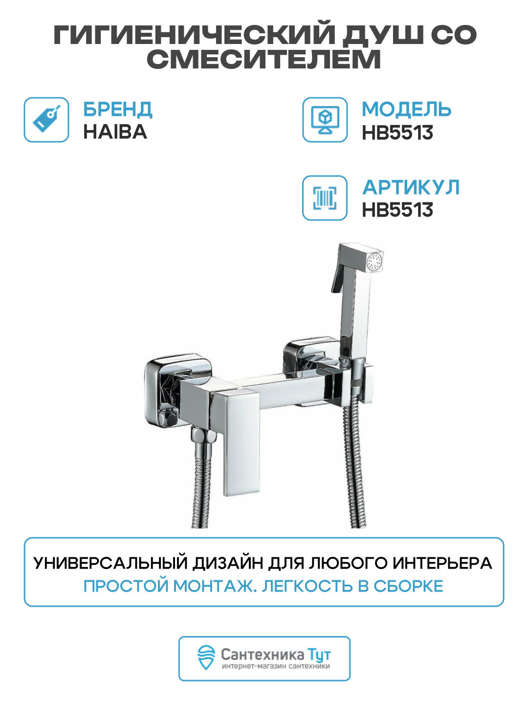 Гигиенический душ Haiba HB5513 Хром латунь на стену со смесителем: сравнение цен, характеристики, фото, актуальное наличие и цены.