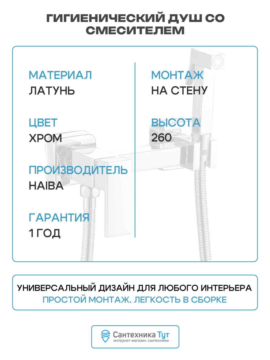 Душ гигиенический со смесителем хром HB5510 HAIBA