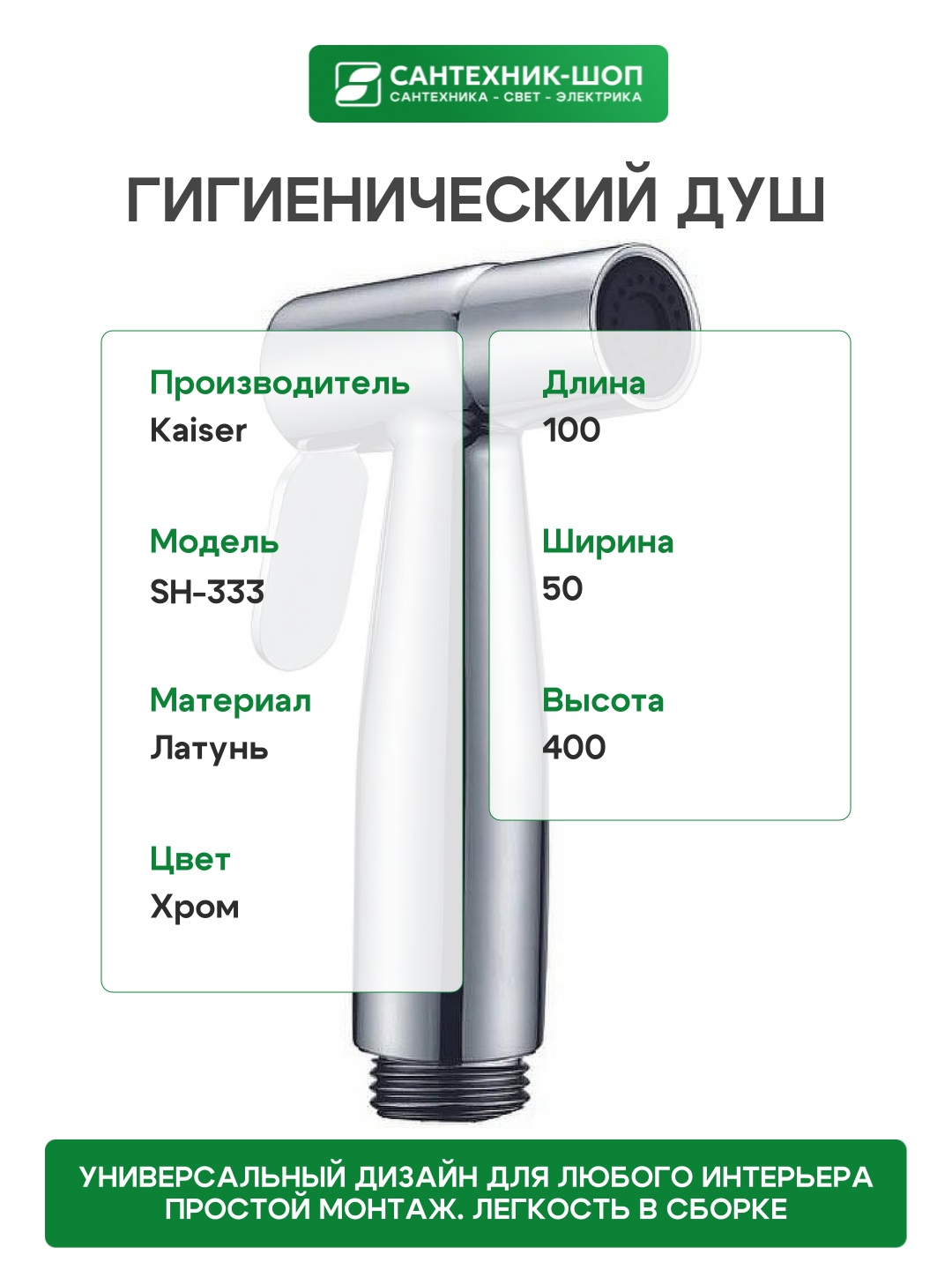 Гигиенический душ Kaiser SH-333 Хром: сравнение цен, характеристики, фото, актуальное наличие и цены.