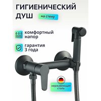 Смеситель с гигиеническим душем монтируется в стену с помощью минимума необходимы инструментов, в комплекте вы получаете сразу все необходимые детали для полноценного использования оборудования: сам смеситель, шланг, лейку, резиновые прокладки и декоративные настенные накладки-отражатели. Изделие упаковано в заводскую коробку, каждый элемент находится в дополнительной защите.