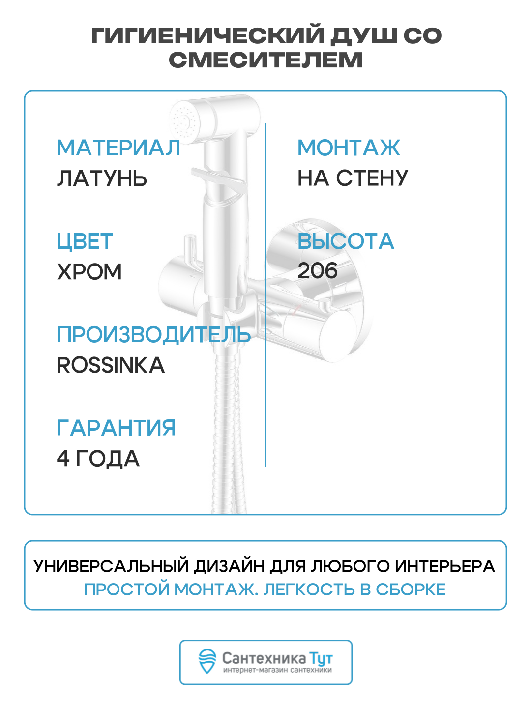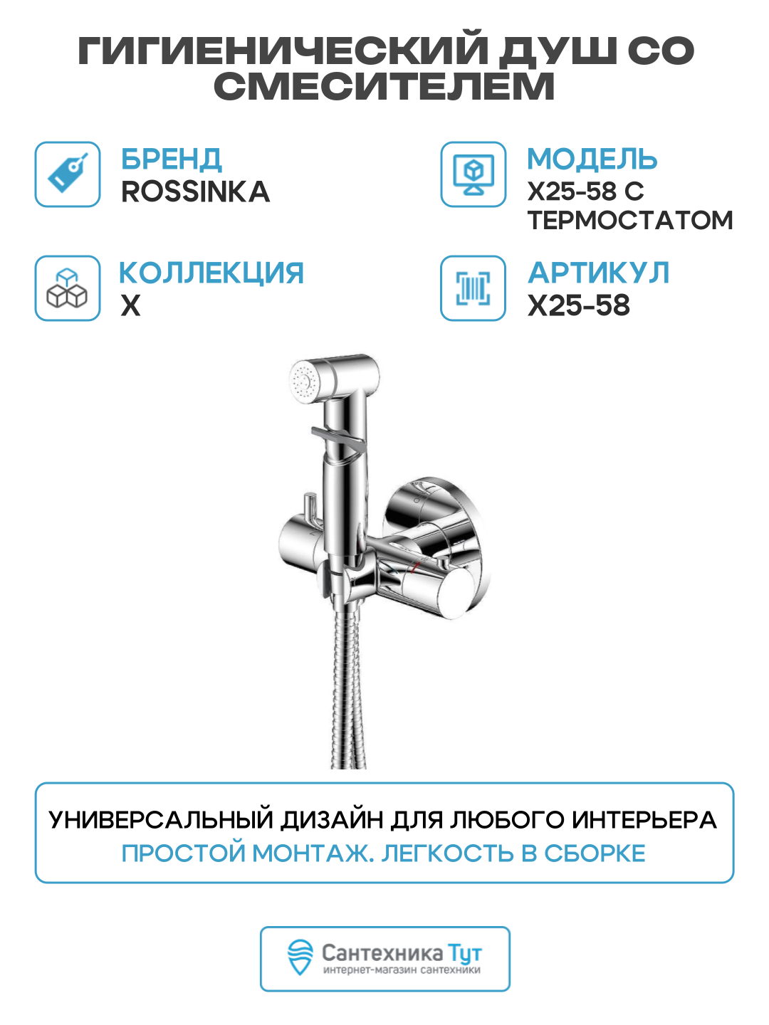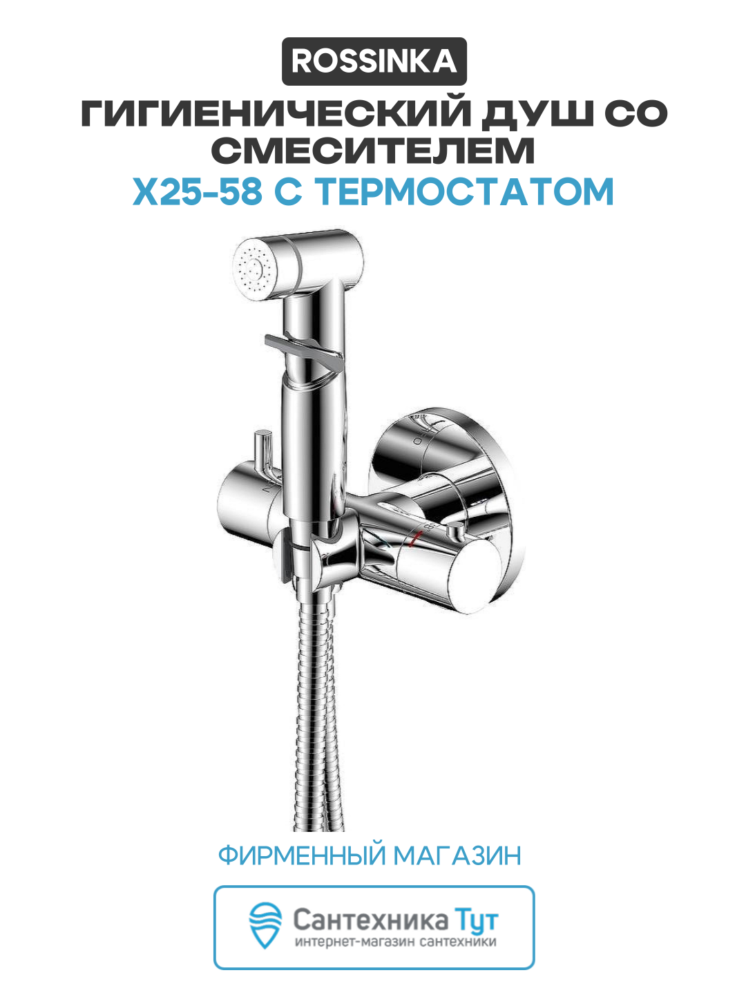 Гигиенический душ Rossinka X25-58, с термостатом, однорычажный, хром: сравнение цен, характеристики, фото, актуальное наличие и цены.