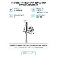 Купить Гигиенический душ Rossinka X25-58, с термостатом, однорычажный, хром с доставкой по всей России.