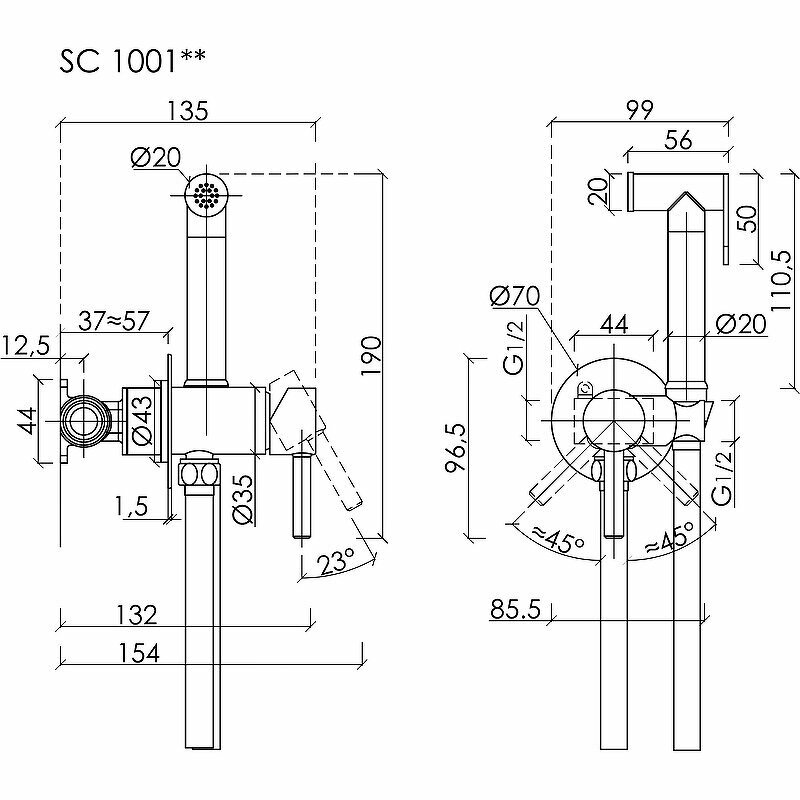 Гигиенический душ Sancos Start со смесителем, черный матовый SC1001MB