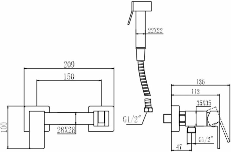 Гигиенический душ со смесителем ALMAes Benito AL-859-01 Хром