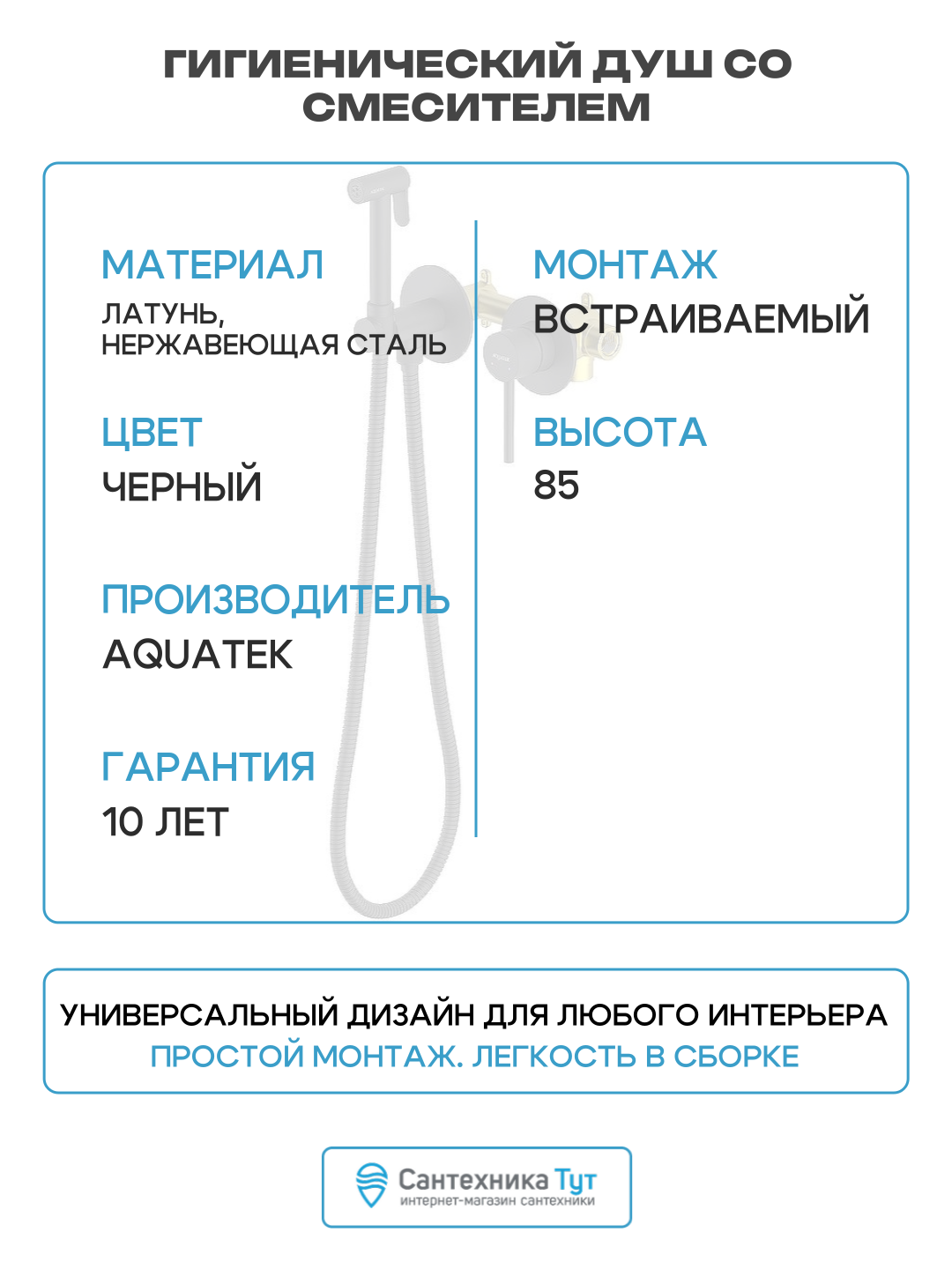 Гигиенический душ со смесителем Aquatek Европа AQ1319MB черный: сравнение цен, характеристики, фото, актуальное наличие и цены.