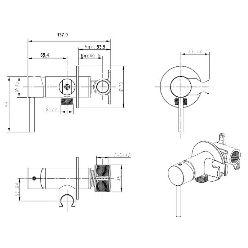 - Смеситель (внешняя и внутренняя часть).- Гигиенический душ.- Душевой шланг.