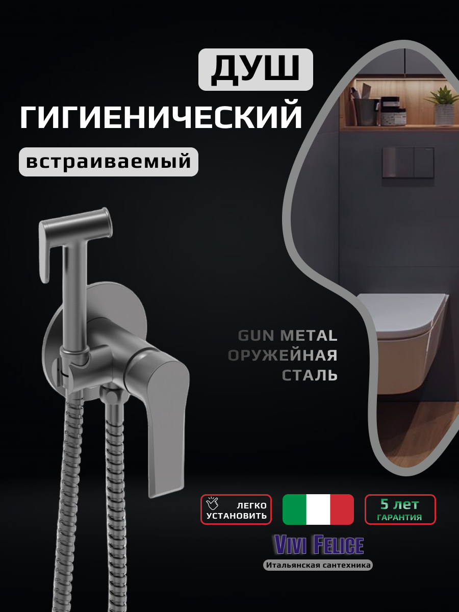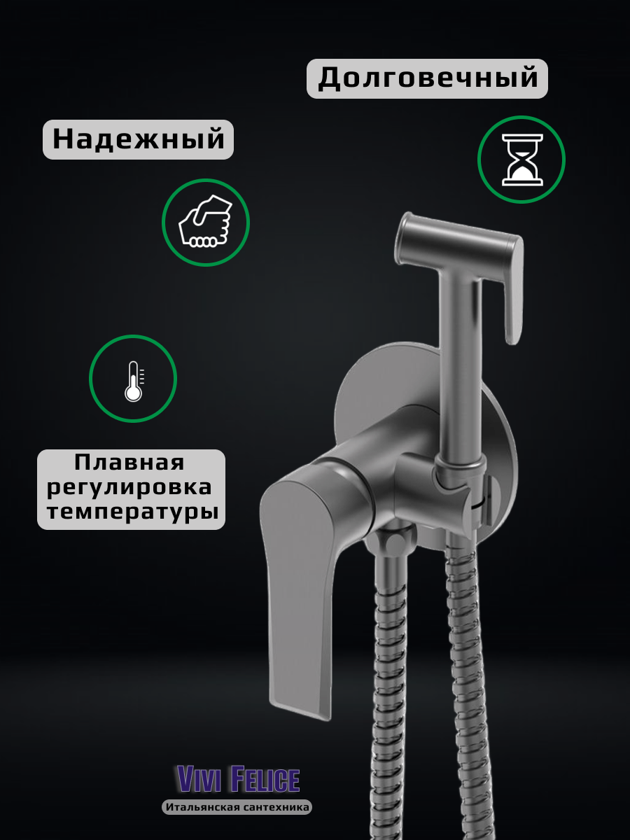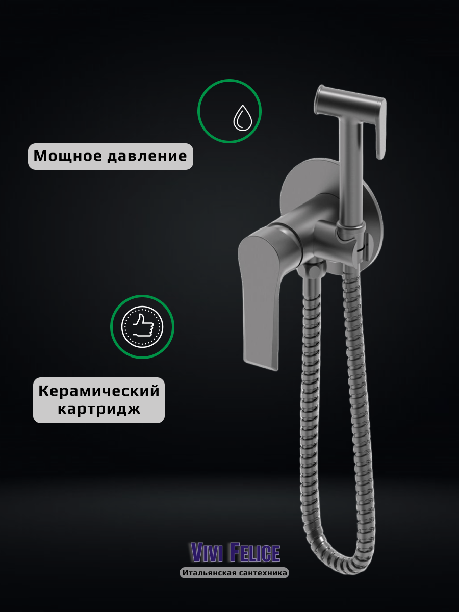 Купить Гигиенический душ со смесителем для биде Vivi Felice, латунь, оружейная сталь с доставкой по всей России.