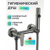 Гигиенический душ со смесителем, лейкой, серый