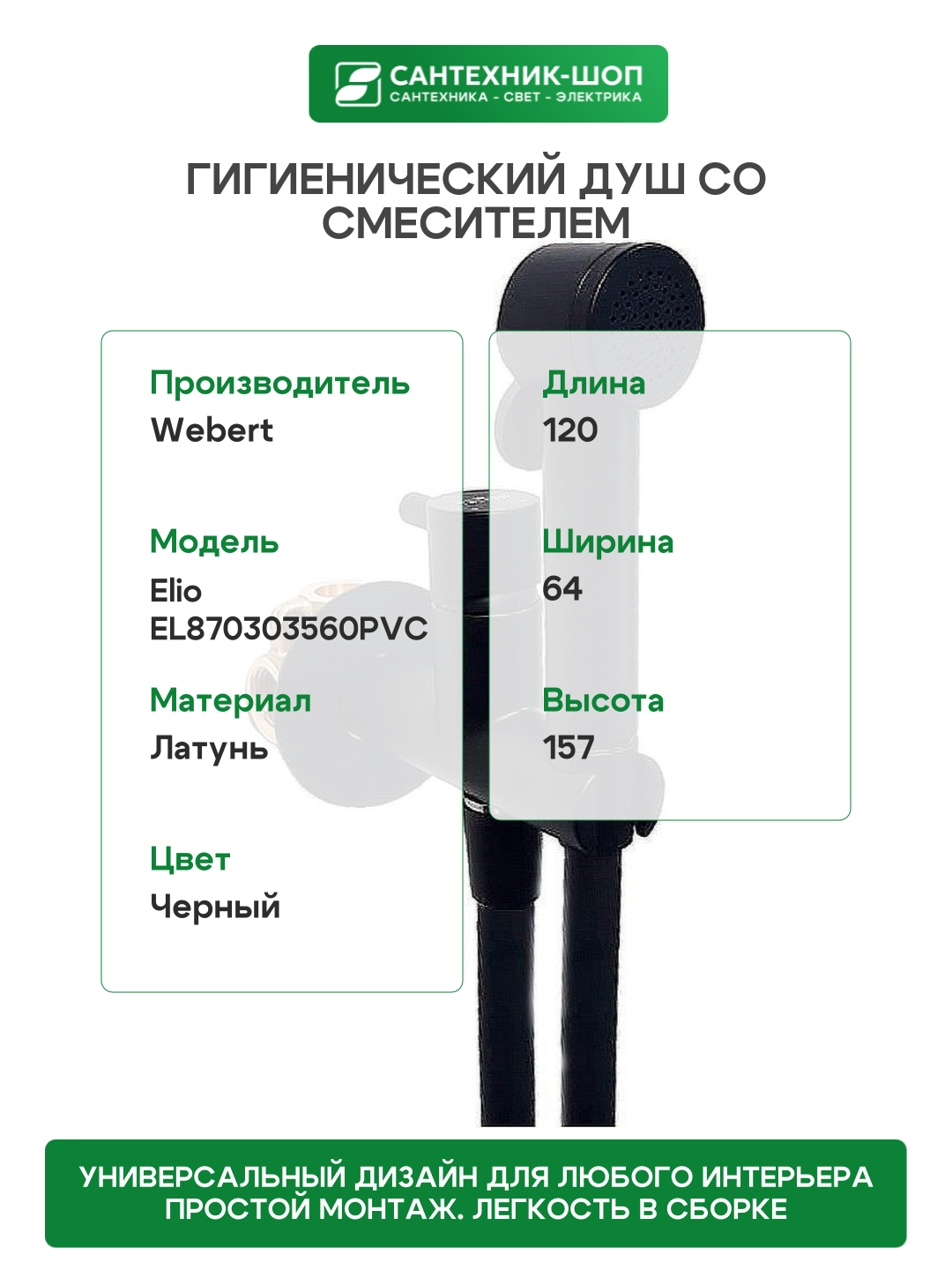 Купить Гигиенический душ со смесителем Webert Elio EL870303560PVC Черный матовый латунь на стену с доставкой по всей России. Гигиенический душ со смесителем Webert Elio EL870303560PVC Черный матовый латунь на стену: сравнение цен, характеристики, фото, актуальное наличие и цены.