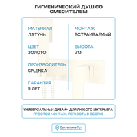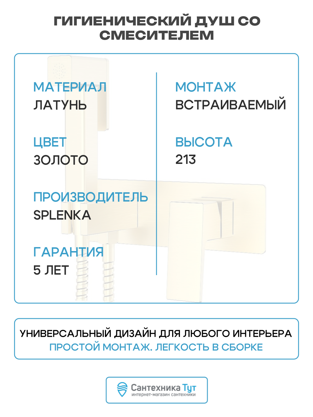 Купить Гигиенический душ Splenka S01.52.03 Золото матовое латунь встраиваемый со смесителем с доставкой по всей России. Гигиенический душ Splenka S01.52.03 Золото матовое латунь встраиваемый со смесителем: сравнение цен, характеристики, фото, актуальное наличие и цены.