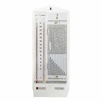 ВИТ-1 гигрометр психрометрический, служит для измерения относительной влажности воздуха в закрытых помещениях складского типа. Характеристики: Диапазон измерения относительной влажности, % от 20 до 90 Температурный диапазон измерений влажности, гр. С от 5 до 25 Диапазон измерений температуры, гр. С от 0 до 25 Цена деления шкалы: 0,2гр. С Абсолютная погрешность термометров после введения поправок: +-0,2гр. С Габаритные размеры: 295х120х50мм Масса: не более 350гр. Заполнение: толуол Межповерочный интервал: 2 года. Конструкция гигрометра вит 1: пластиковое основание с психрометрическаой таблицей, два термометра, температурная шкала, питатель, штатив. Гигрометр измеряет относительную влажность воздуха за счет разницы показателей двух термометров. В психрометрической таблице вычисляется показатель влажности в помещении. ВИТ-1 является прибором полного погружения. До начала измерений гигрометр должен находится в измеряемой среде не менее 30 минут. Гигрометр ВИТ-1 является средством измерения, имеет сертификат об утверждении типа СИ. Гигрометр внесен в Государственный реестр СИ под №9364-08 и допущен к применению в Российской Федерации. Гигрометры психрометрические поставляются с первичной поверкой, которая производится методом прямых измерений по МИ 737-83. Межповерочный интервал данных приборов - 2 года. Перед началом эксплуатации гигрометра следует убедиться в отсутствии разрывов шкалы термометрической жидкости в термометрах. Данные разрывы не являются браком и легко устраняются путем нагревания шкалы до соединения всех частей разрыва. Затем необходимо снять питатель с основания, заполнить его дистиллированной водой. Установить питатель на основании необходимо таким образом, чтобы от края открытого конца питателя до резервуара термометра было расстояние не менее 20мм, фитиль при этом не должен касаться стенок открытого конца питателя. Внимание! Перед установкой питателя в рабочее положение необходимо смочить фитиль и резервуар "увлажненного" термометра водой из питателя. Комплект поставки: гигрометр в сборе: 1шт, паспорт: 1шт, руководство по эксплуатации: 1 шт, фитиль: 1шт, коробка: 1шт.