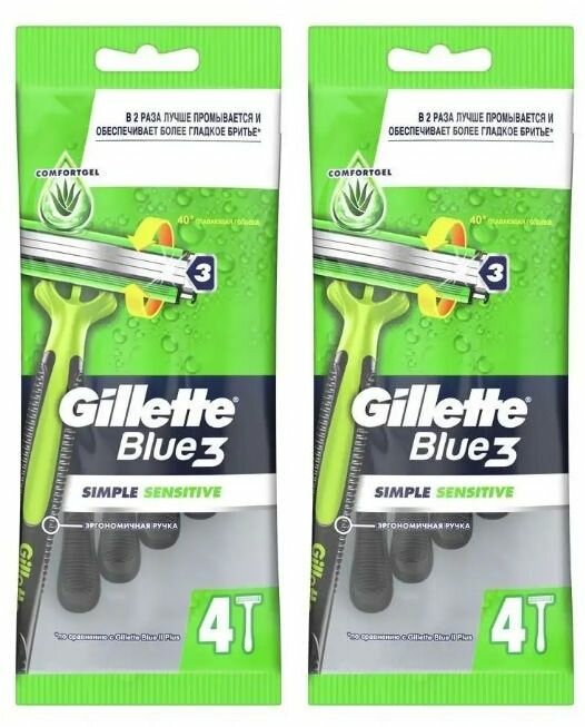 Купить Gillette Мужская бритва Blue 3 Simple Sensitive, 4 шт, 2 уп с доставкой по всей России.