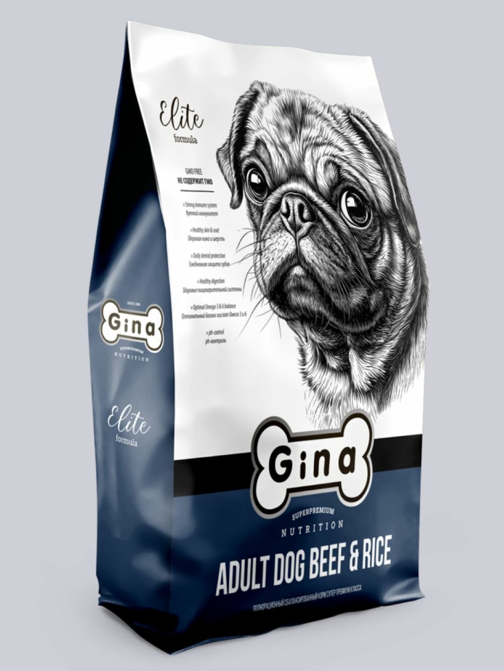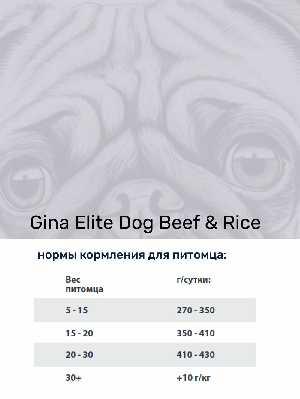 Gina Elite Dog Beef & Rice (Китай) 15кг сухой супер-премиум корм для собак с говядиной и рисом: сравнение цен, характеристики, фото, актуальное наличие и цены.