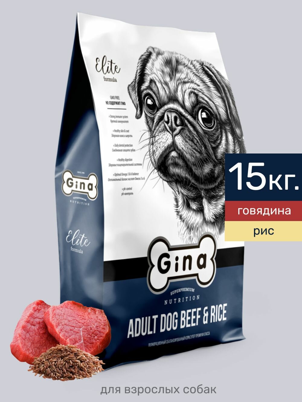 Купить Gina Elite Dog Beef & Rice (Китай) 15кг сухой супер-премиум корм для собак с говядиной и рисом с доставкой по всей России.