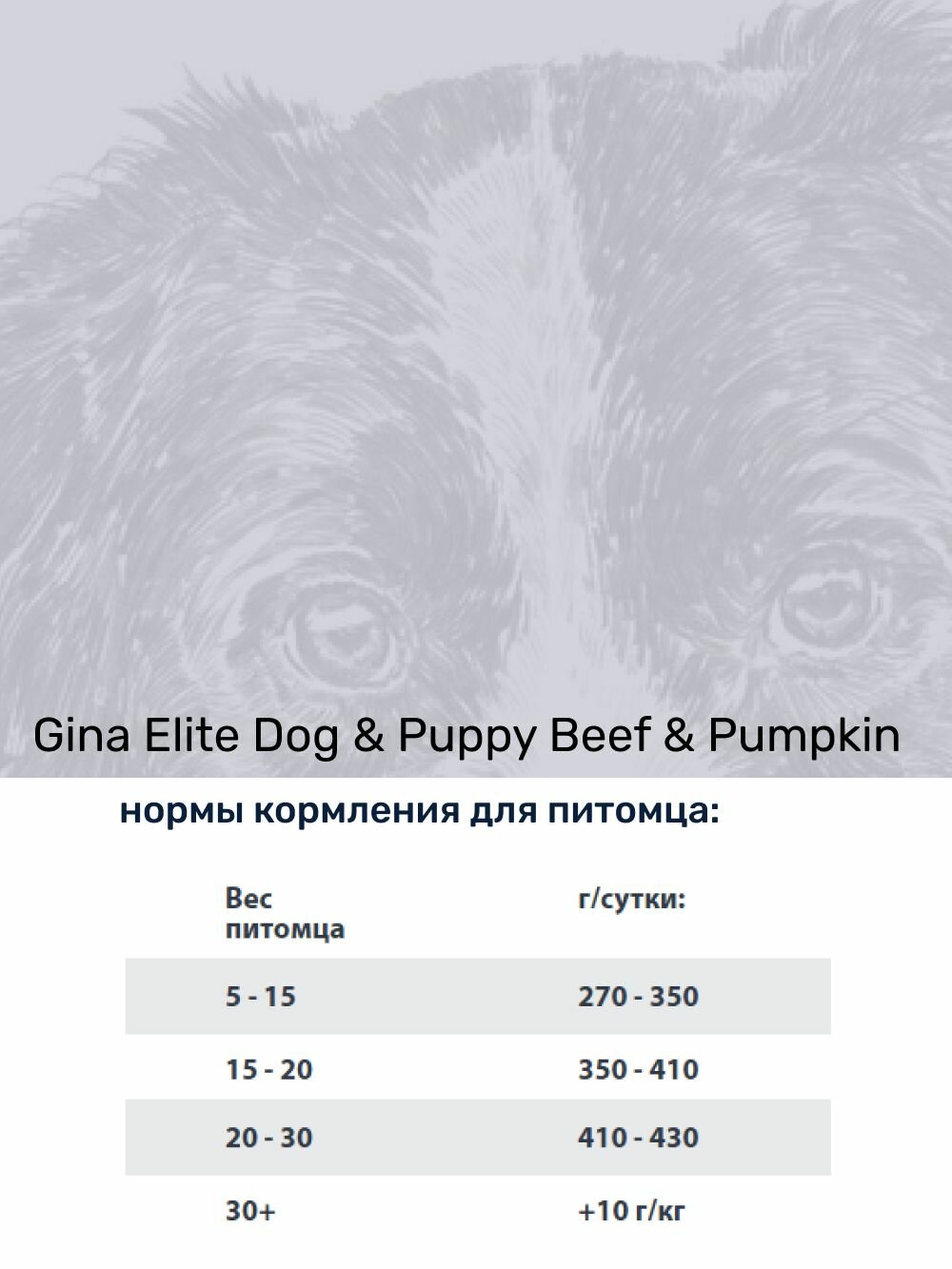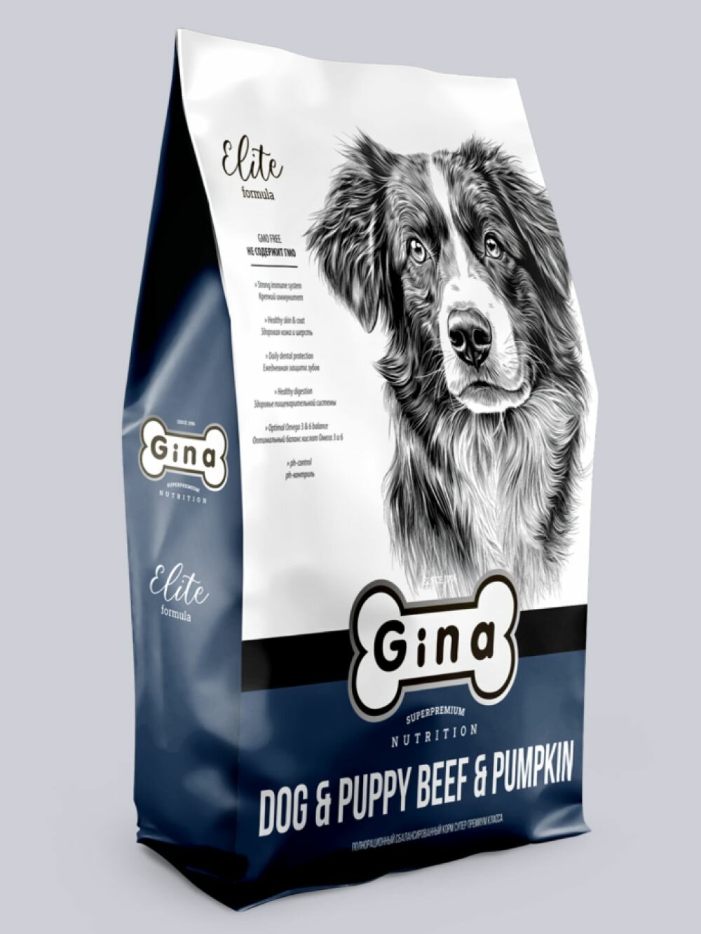 Gina Elite Dog & Puppy Beef & Pumpkin (Китай) 15кг сухой корм для собак и щенков с говядиной и тыквой: сравнение цен, характеристики, фото, актуальное наличие и цены.