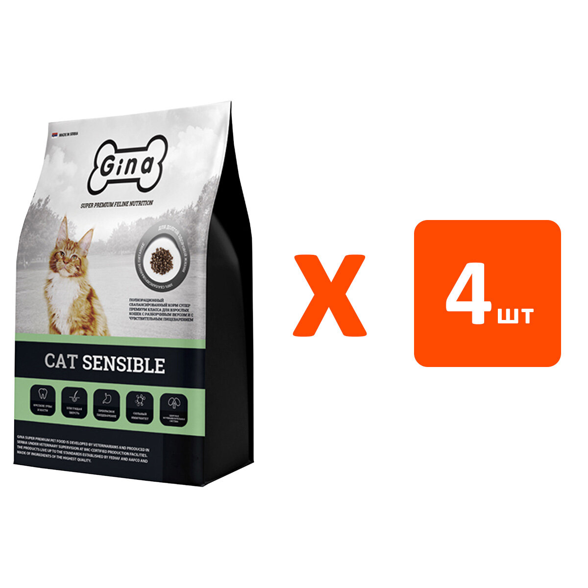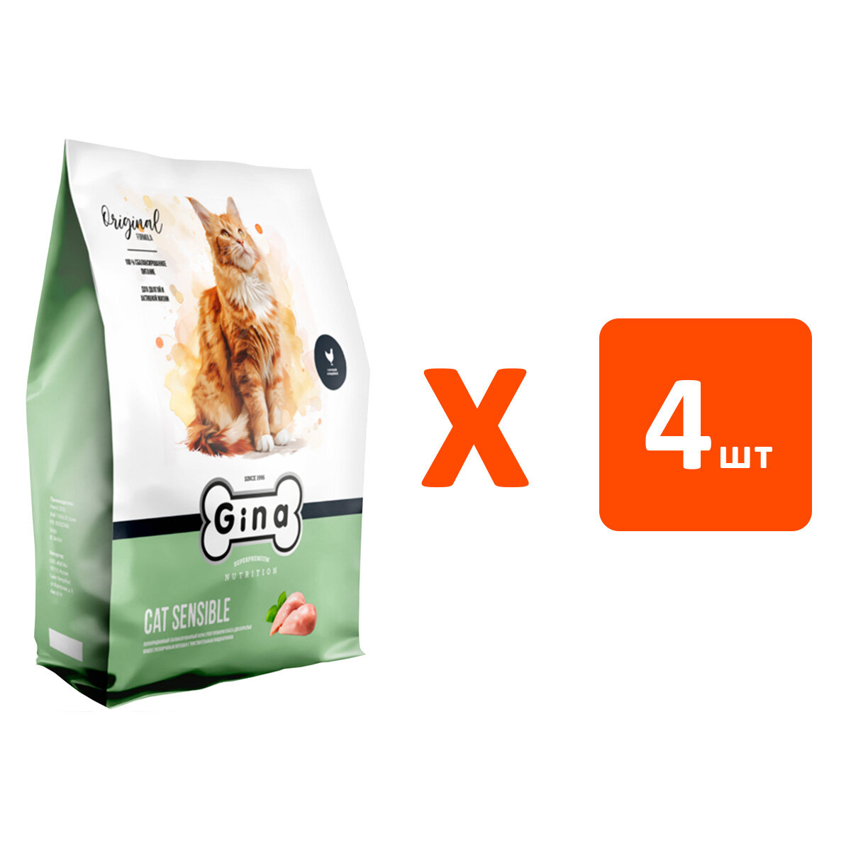 GINA GRAIN FREE ADULT CAT SENSIBLE беззерновой для взрослых кошек с чувствительным пищеварением 02309 (3 кг х 4 шт): сравнение цен, характеристики, фото, актуальное наличие и цены.