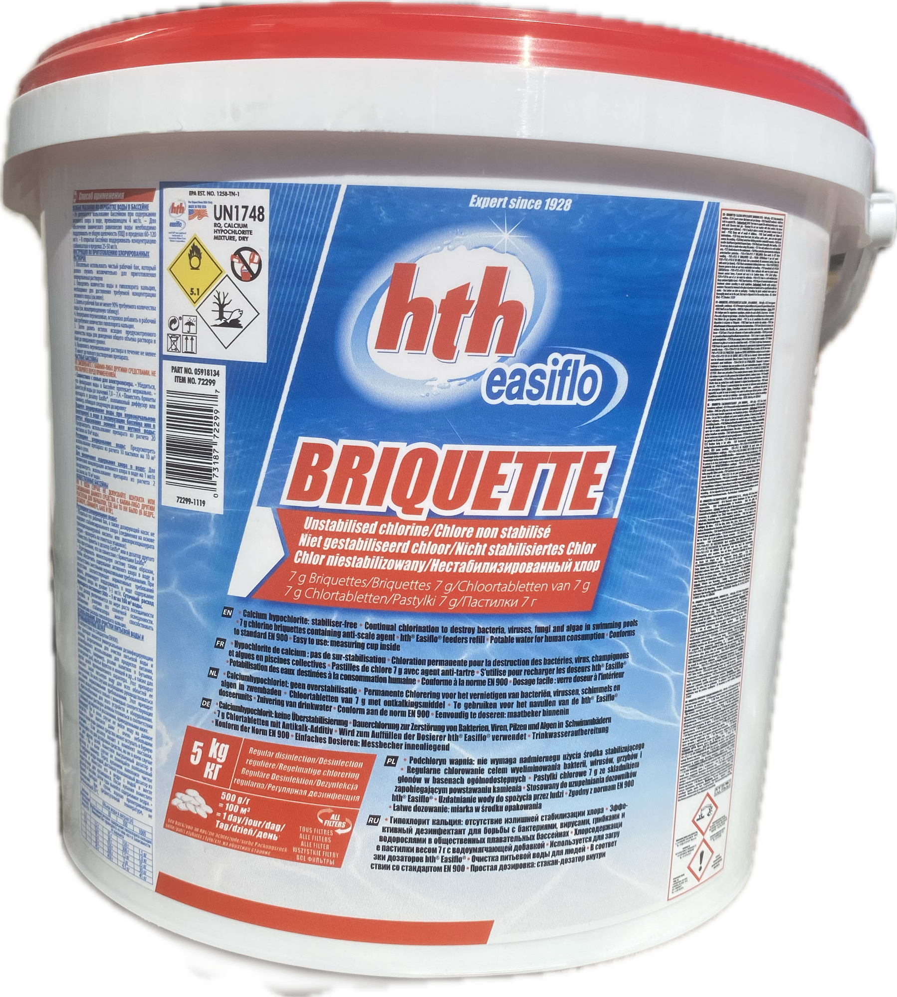 Купить Гипохлорит кальция hth BRIQUETTE пастилки хлора 7гр 5 кг с доставкой по всей России.