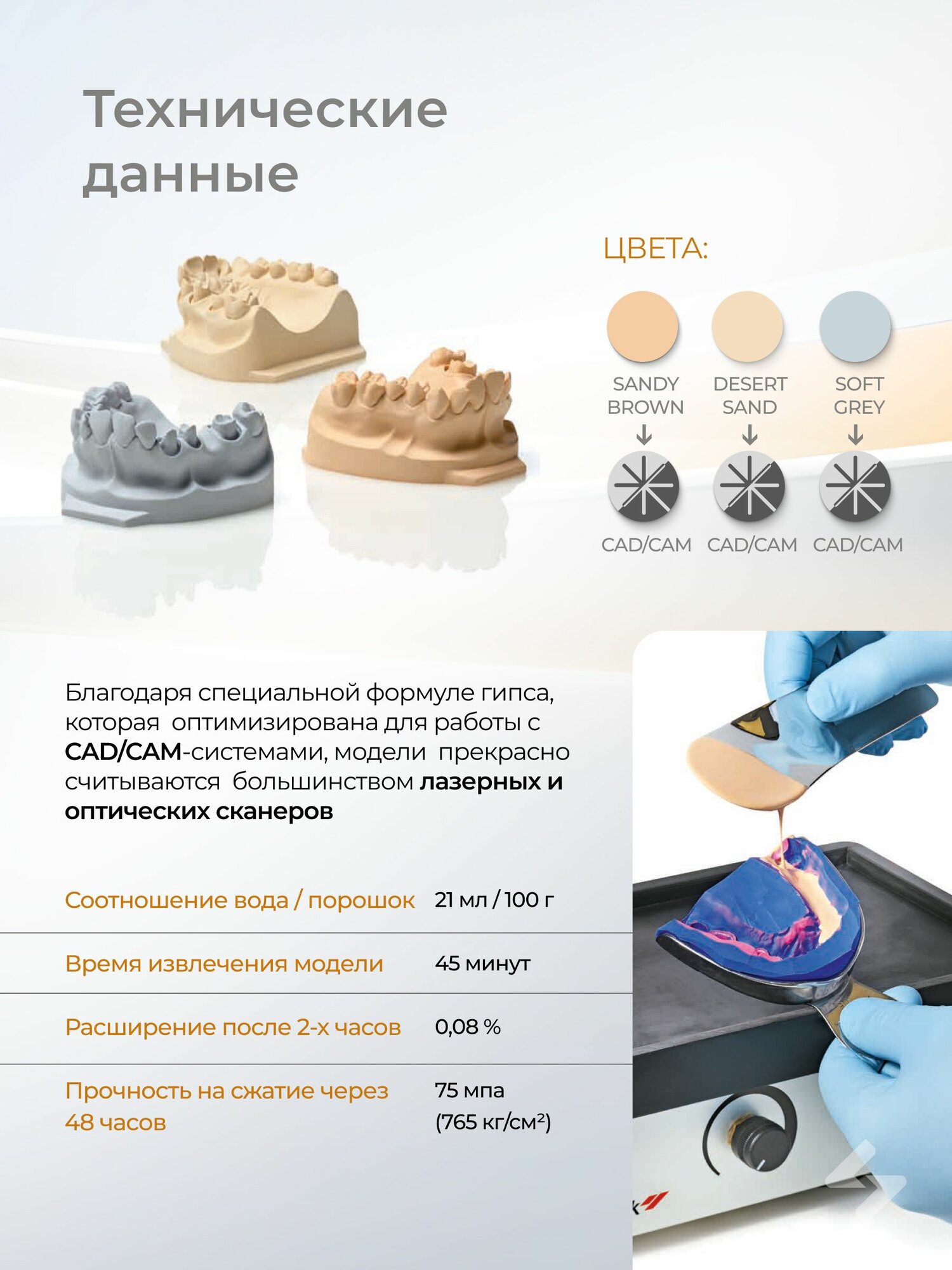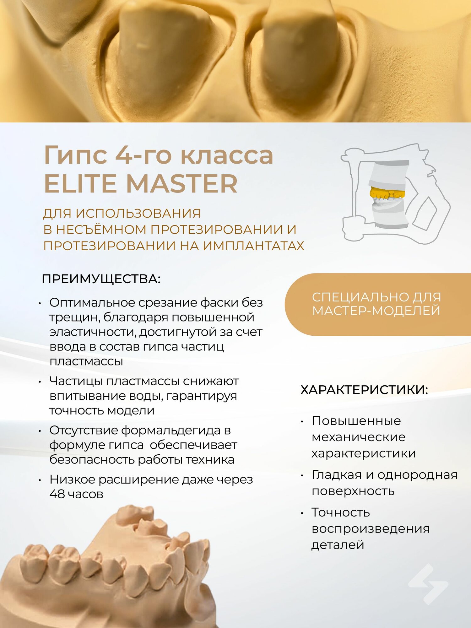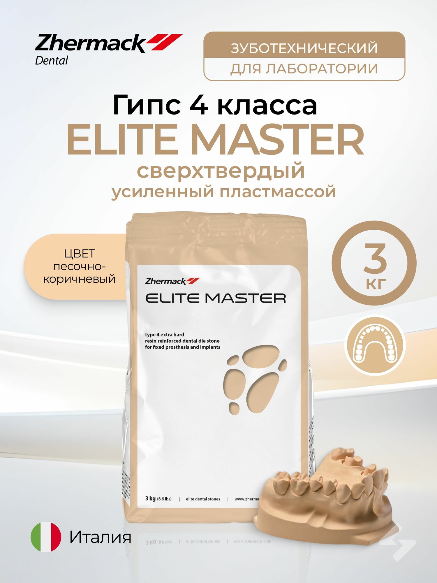 Elite Master гипс сверхпрочный, 4 класс, цвет песочно-коричневый, укрепленный пластмассой для воспроизведения культи в несъемном протезировании и имплантологии.