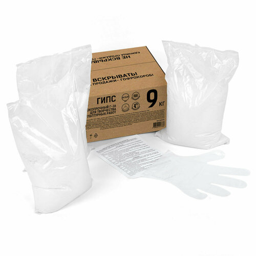 Скульптурный гипс остров сокровищ отлично подойдет для изготовления моделей и форм, лепки, скульптурных работ. Способствует развитию мелкой моторики, творческих способностей и пространственного мышления. Высокопрочный скульптурный гипс не содержит примесей, обладает высокой природной белизной, равномерно и безусадочно застывает после заливки форм. Используется для изготовления моделей и форм, лепки, а также для скульптурных работ. Гипс обладает рядом достоинств, которые позволяют ему значительно превосходить подавляющее большинство прочих материалов, применяемых в творчестве, а также других сферах. К неоспоримым его преимуществам можно отнести:- небольшой вес;- легкое смешивание при приготовлении растворов;- быстрое застывание;- короткий период высыхания;- умеренная твердость. Поставляется в гофрокоробе в фасовке 9 кг. В комплекте идет одна пара перчаток.