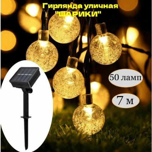Гирлянда Шарики длиной 7 метров на солнечной батарее предназначена для декорирования приусадебного участка.