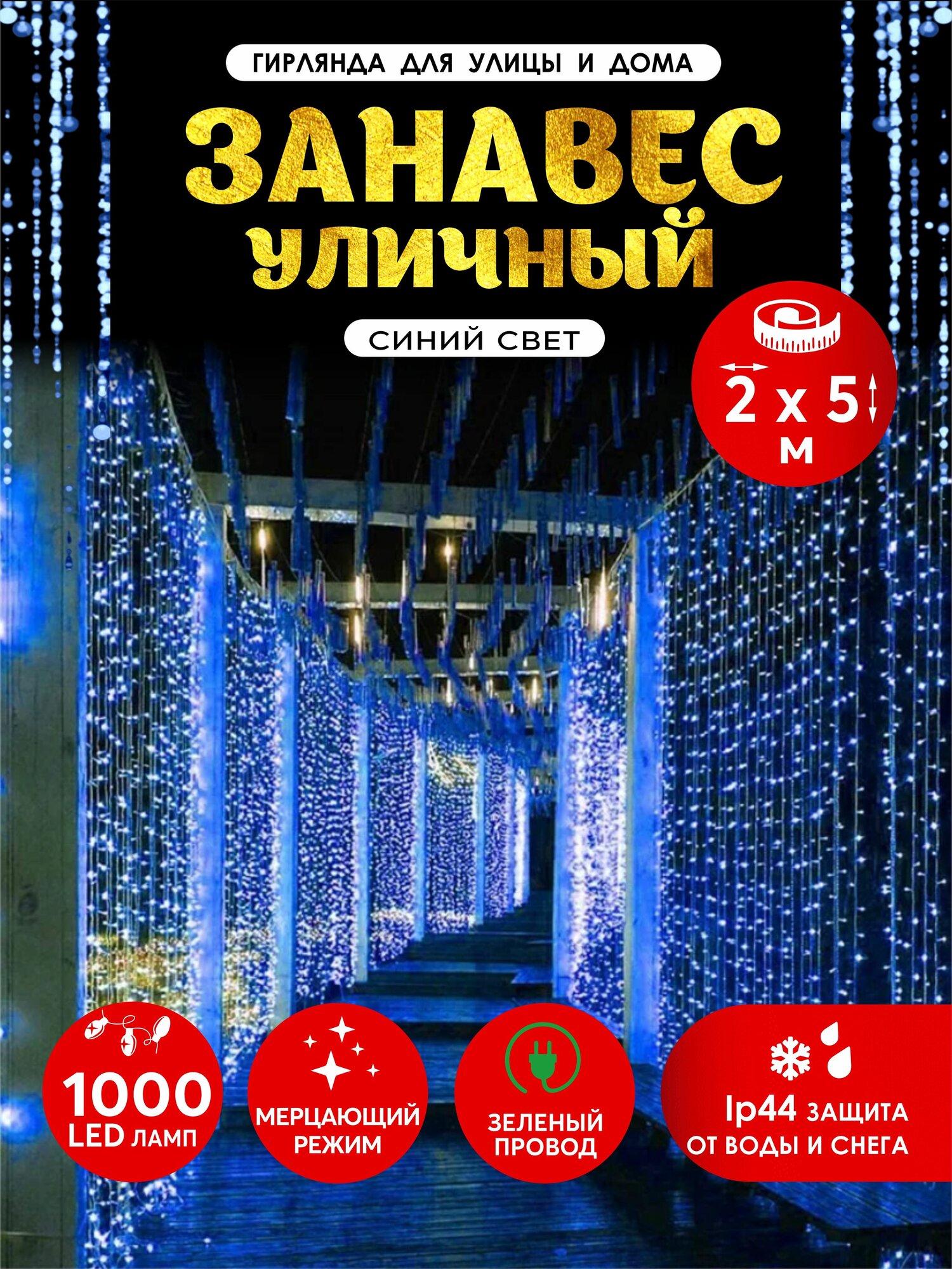 Гирлянда Абелия штора электрогирлянда занавес светодиодный уличный мерцающий IP44 1000LED 2×5 м зелёный провод синий: сравнение цен, характеристики, фото, актуальное наличие и цены.