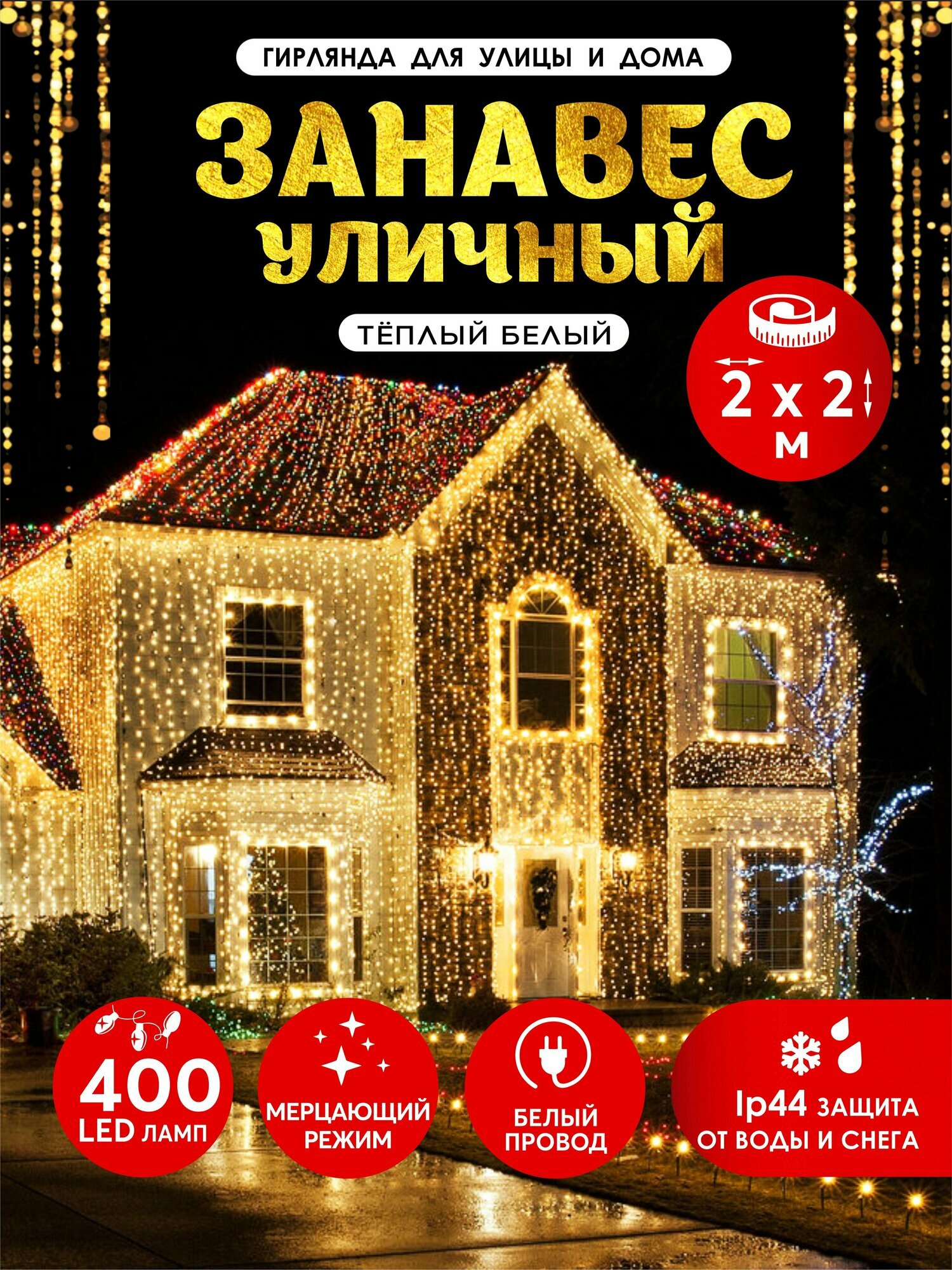 Гирлянда Абелия штора электрогирлянда занавес светодиодный уличный мерцающий IP44 400LED 2×2 м белый провод тёпло-белый: сравнение цен, характеристики, фото, актуальное наличие и цены.