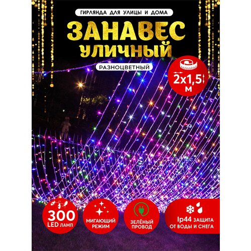 Гирлянда уличная на дом имеет практичный размер 2x1,5 метров, что позволяет легко украсить даже большие окна или стены. При выборе, стоит обратить внимание на количество светодиодов на метр: чем их больше, тем ярче будет светить гирлянда. Отличный выбор для создания праздничного настроения и украшения территории в темное время суток. Правильно подобранная гирлянда обеспечит яркий и красочный декор, который будет радовать глаз и создавать уют на вашем участке. Ширина занавеса 2 м, 10 вертикальных нитей длиной 1,5 м. Общее количество LED ламп 300 шт. Цвет LED ламп - RGB цветной. Цвет провода - зеленый. Имеет статичное свечение с флэш эффектом, каждый 8-ой диод. Напряжение - 220 V. Мощность - 13,8 W.
