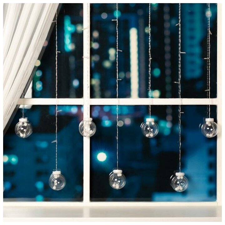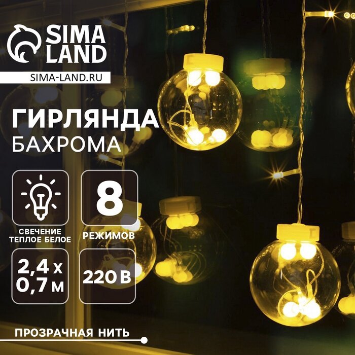Купить Luazon Lighting Гирлянда «Бахрома» 2.4 × 0.7 м с насадками «Шарики», IP20, прозрачная нить, 108 LED, свечение тёплое белое, 8 режимов, 220 В с доставкой по всей России.