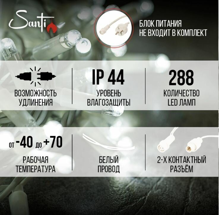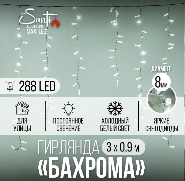 Купить Гирлянда Бахрома 288LED 3х0,9 м холодный белый свет, белый провод IP44 резина, статика Maxi LED COMFORT Santi с доставкой по всей России. Гирлянда Бахрома 288LED 3х0,9 м холодный белый свет, белый провод IP44 резина, статика Maxi LED COMFORT Santi: сравнение цен, характеристики, фото, актуальное наличие и цены.
