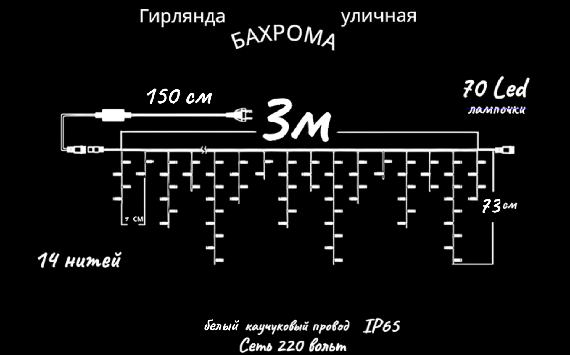 Гирлянда бахрома уличная 3 м, синяя с мерцанием, белый каучук IP65: сравнение цен, характеристики, фото, актуальное наличие и цены.