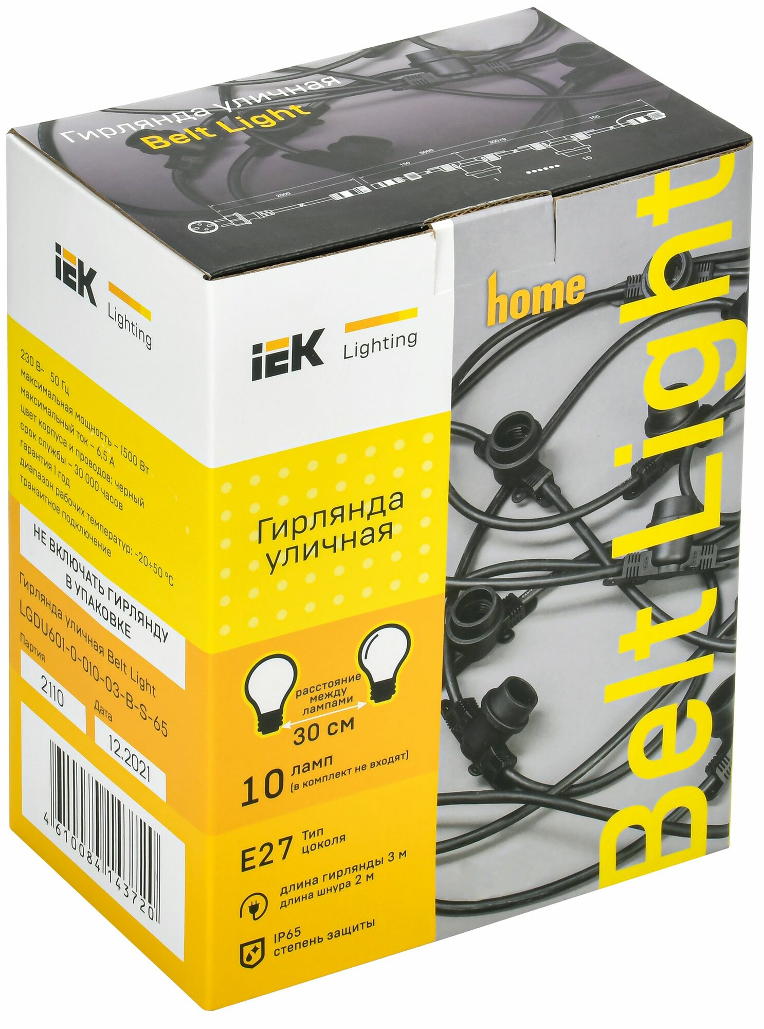 Выбирая гирлянду белт-лайт 3м 10 IP65 черный шнур 2м 230В тр. IEK, вы получаете качественное и функциональное решение для светового оформления различных объектов.