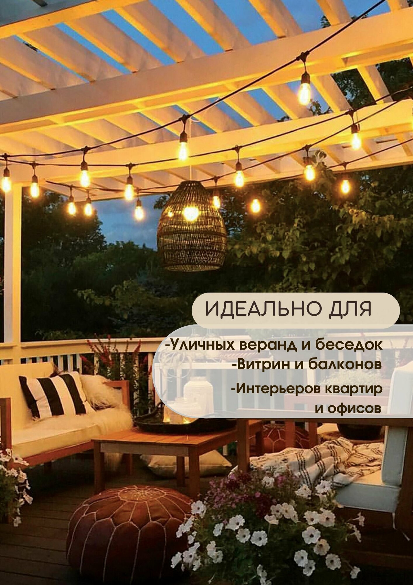 Гирлянда "Белт-лайт" FERON CL50-13-1, 10м+3м сетевой шнур, цвет черный, патрон E27*20, шаг 50см, 230ВV/50Гц, 8A, IP65, max 40W, сечение 2*0,5мм², материал: каучук, медь, ПВХ, латунь. Лампы в комплект не входят. Уличная гирлянда - это декоративный элемент, который может использоваться для оформления различных мероприятий, а также для украшения улицы, сада или балкона. Главное отличие от остальных ретро гирлянд заключается в удобном и практичном проводе вначале гирлянды (длиной 1.5 метра), что значительно облегчает процесс монтажа. Вам больше не потребуются удлинители или переходники и не придется больше выкручивать первых несколько ламп, чтобы провести провод к источнику питания! Она может беспроблемно крепится к дереву, крыше, крыльцу или лестнице благодаря прищепкам (крючкам) на конце патрона. новогодняя, декоративная или осенняя. Использование гирлянды может создавать теплую и уютную атмосферу в интерьере, на даче или на улице как в новогоднюю пору так и в осеннюю. Еще одним из преимуществ гирлянды в сравнении с белт-лайт (belt light) является ее цена и доступность замены ламп. Что касается морозоустойчивости, она может использоваться в любое время года независимо от осадков и погоды. Гирлянда имеет постоянный режимы свечения, что предает особую световую атмосферу. Провод гирлянды, закрепленный на прочной ленте, который можно использовать для оформления фасада дома, беседки, веранды или дерева. Гирлянда может быть украшением для свадьбы, выпускного, детской вечеринки, хэллоуина или девичника. Она может быть использована для создания фотозоны или украшения потолка, стены, стенки или зеркала. Гирлянда может быть оформлена в стиле винтаж, лофт или ретро. Если вы хотите создать уютную атмосферу в вашей комнате, дачном участке или на вашем балконе, уличная гирлянда - это отличное решение для вас! Большими круглыми ретро лампочка которая дает не холодный белый свет, а по настоящему теплый желтый на много красивее смотрятся чем светильники с мелкими лампочками. Можно украсить большие елки или повесить на дом чтобы была домашняя атмосфера. Для монтажа достаточно одного человека шнур 1.5 метра не требуется удлинитель для гирлянды. Питание от сети, а не солнечной батарее. В отличии от типа: занавес или бахрома, наша гирлянда-растяжка морозоуйчивая , соединяемая патронами , точечная и сумарное напряжение 350 вольт . Поэтому ее не напугает зимой морозостойкий декабрь (- 40), вы смело можете наряжать хоть 5 или даже 15 метровую елку ведь гирлянду можно соединить и в 40 метров, а светодиодную и до 350 метров. Гирлянда желтая для фото, 14, 23 февраля, 8 м, в детскую или на улицу зимой на дом.