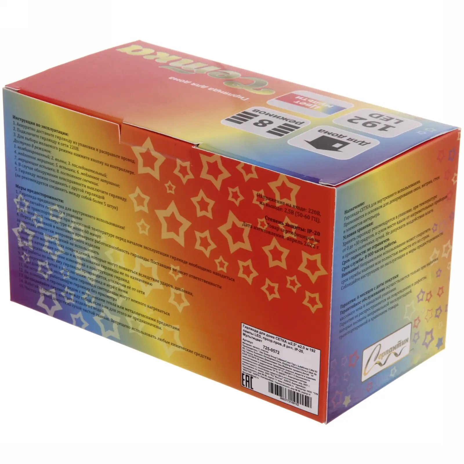 Гирлянда для дома сетка ш2,5* в2,0 м 192 лампы LED, прозр. пров,8 реж, IP-20, Мультицвет: сравнение цен, характеристики, фото, актуальное наличие и цены.