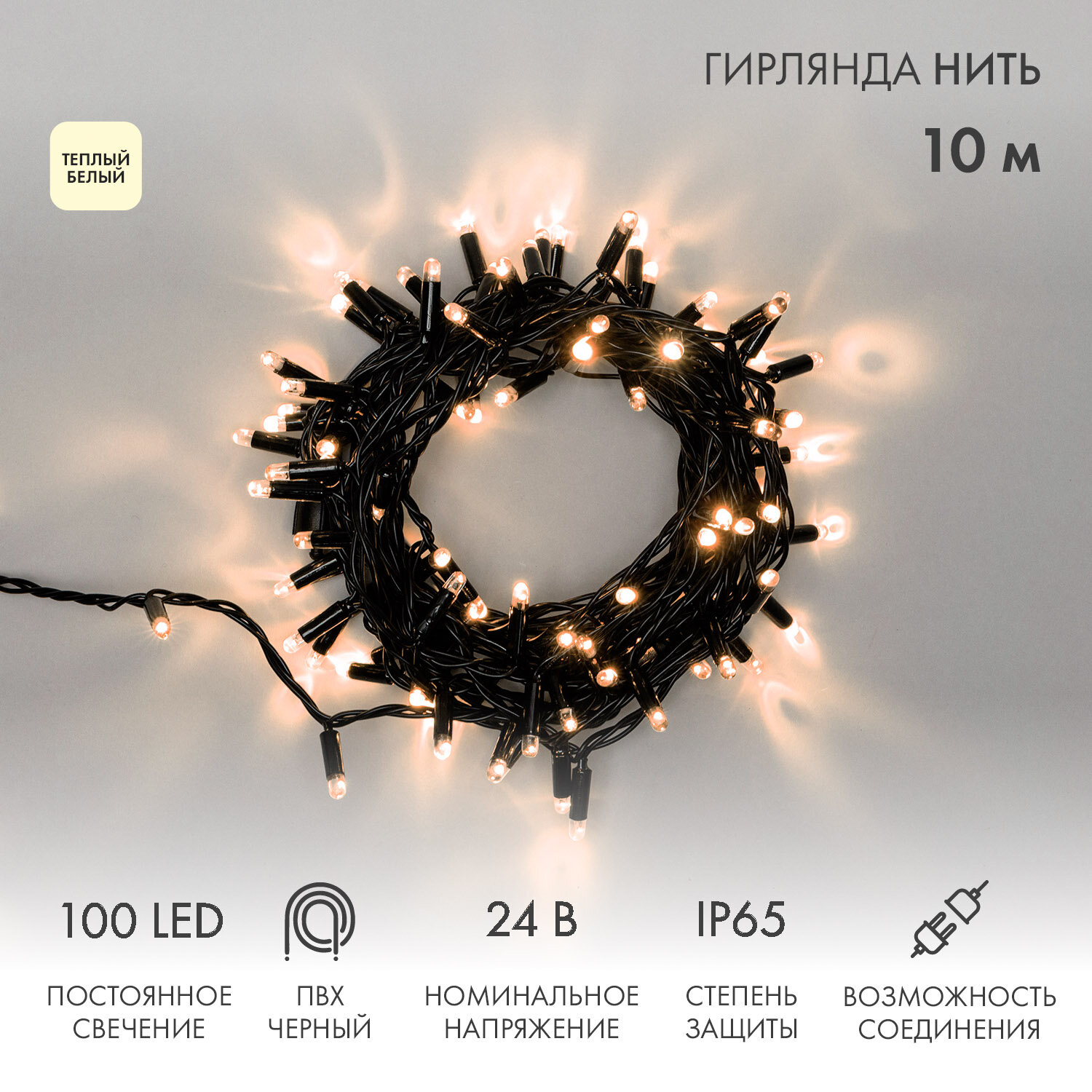 Купить Гирлянда электрогирлянда новогодняя светодиодная уличная 100 LED Neon-Night Нить 10м 24 В, теплое белое свечение с доставкой по всей России.