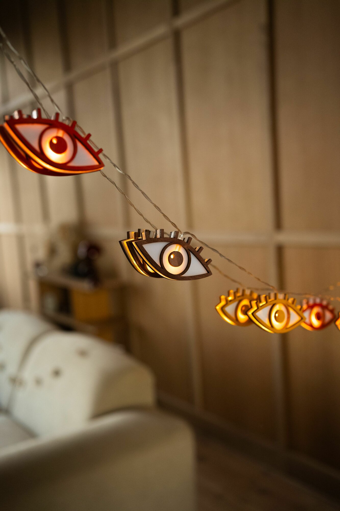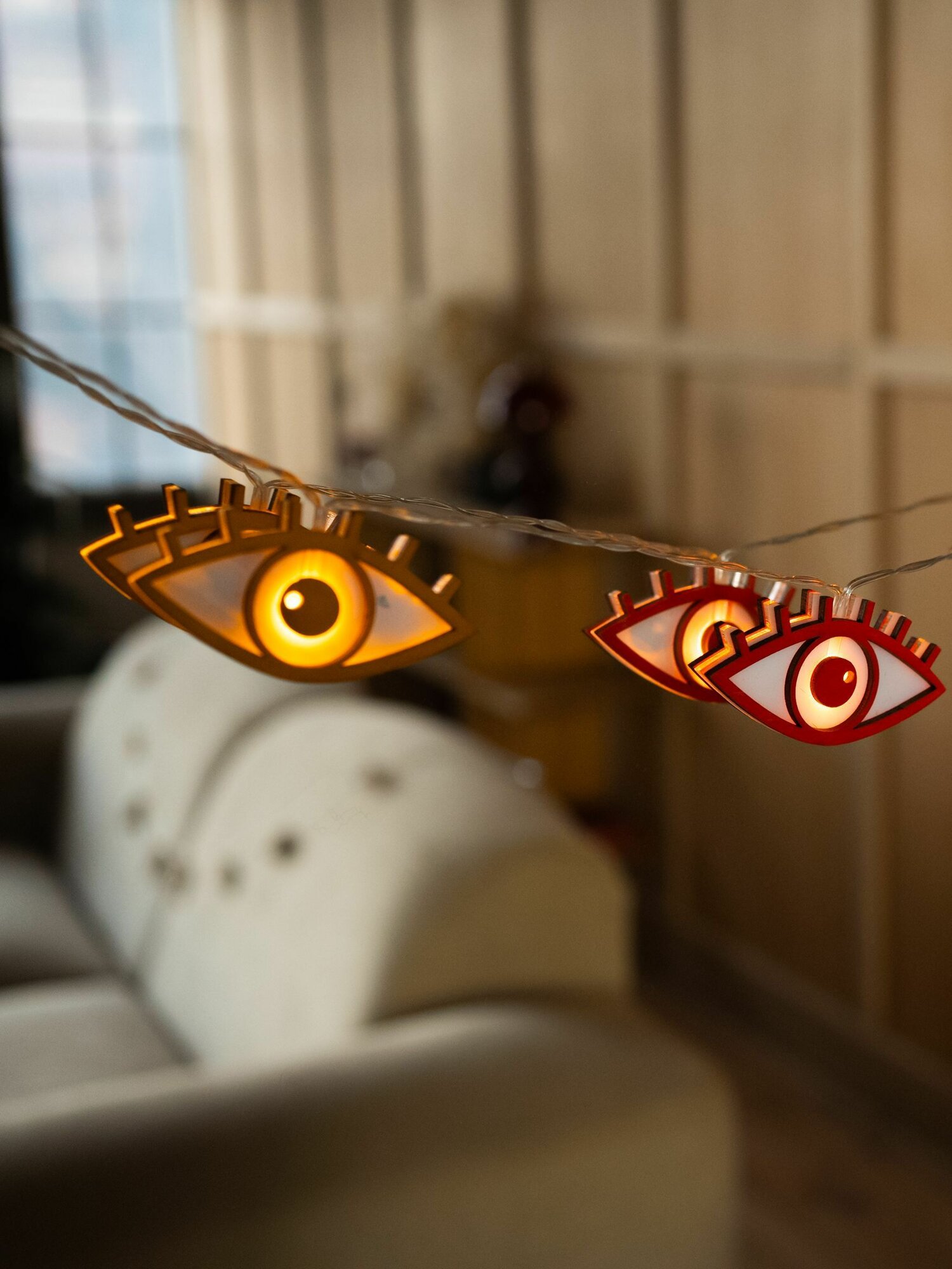 Гирлянда в виде глаз может создать атмосферу уюта у вас на кухне, в кафе или баре. Гирлянда будет пристально наблюдать за вами, чтоб вы не допустили ошибок. Также гирдянда будет приглядывать за вашим домом в ваше отсутствие.