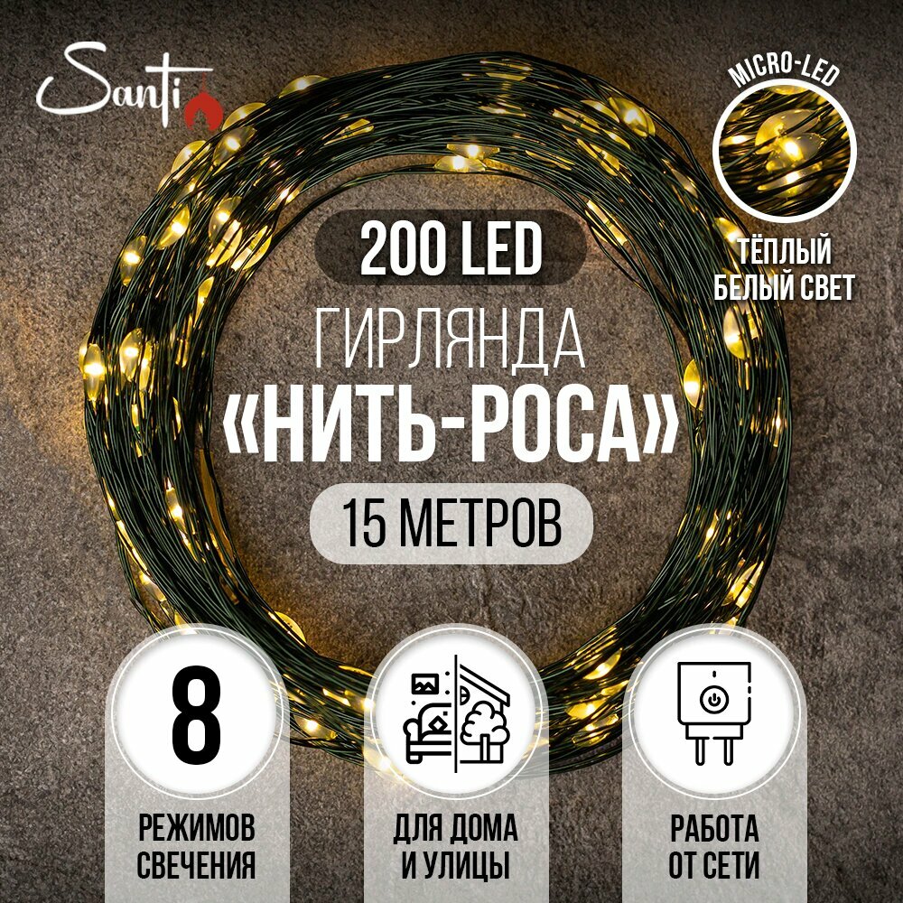 Купить Гирлянда интерьерная Santi Роса micro-LED 200LED 15 м, теплый белый, зеленый провод, 8 функций с доставкой по всей России. Гирлянда интерьерная Santi Роса micro-LED 200LED 15 м, теплый белый, зеленый провод, 8 функций: сравнение цен, характеристики, фото, актуальное наличие и цены.