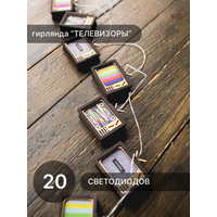 Классическая светодиодная гирлянда на прозрачном проводе. Плафоны в виде советских телевизоров размером 7х5 см. Количество телевизоров 20 штук. Длина 3 метра.