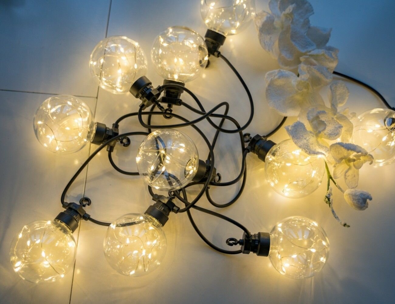 Черный ПВХ-провод с IP44 защитой от брызг воды является точным поводом для ее использования на открытом воздухе в любых погодных условиях. Кроме того, серия гирлянд из лампочек стандарт класса и прекрасно подойдет для любых декоративных нужд в доме или саду.