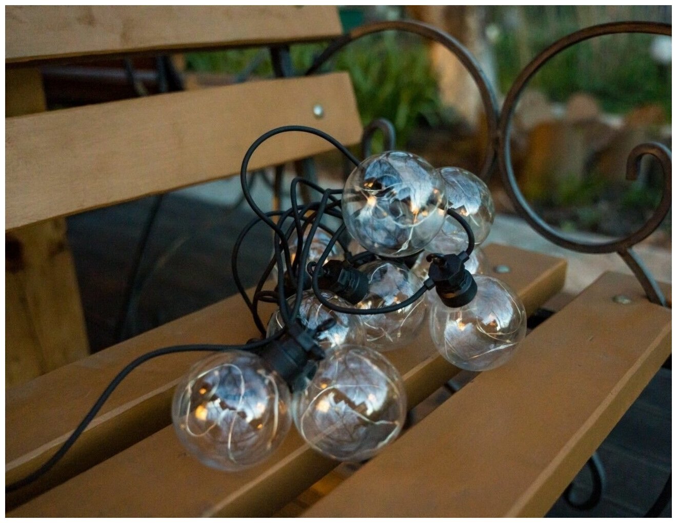 Лампочки имеют фигурную насадку, напоминающую небольшие шарики, что придает этой гирлянде очарование и оригинальность.