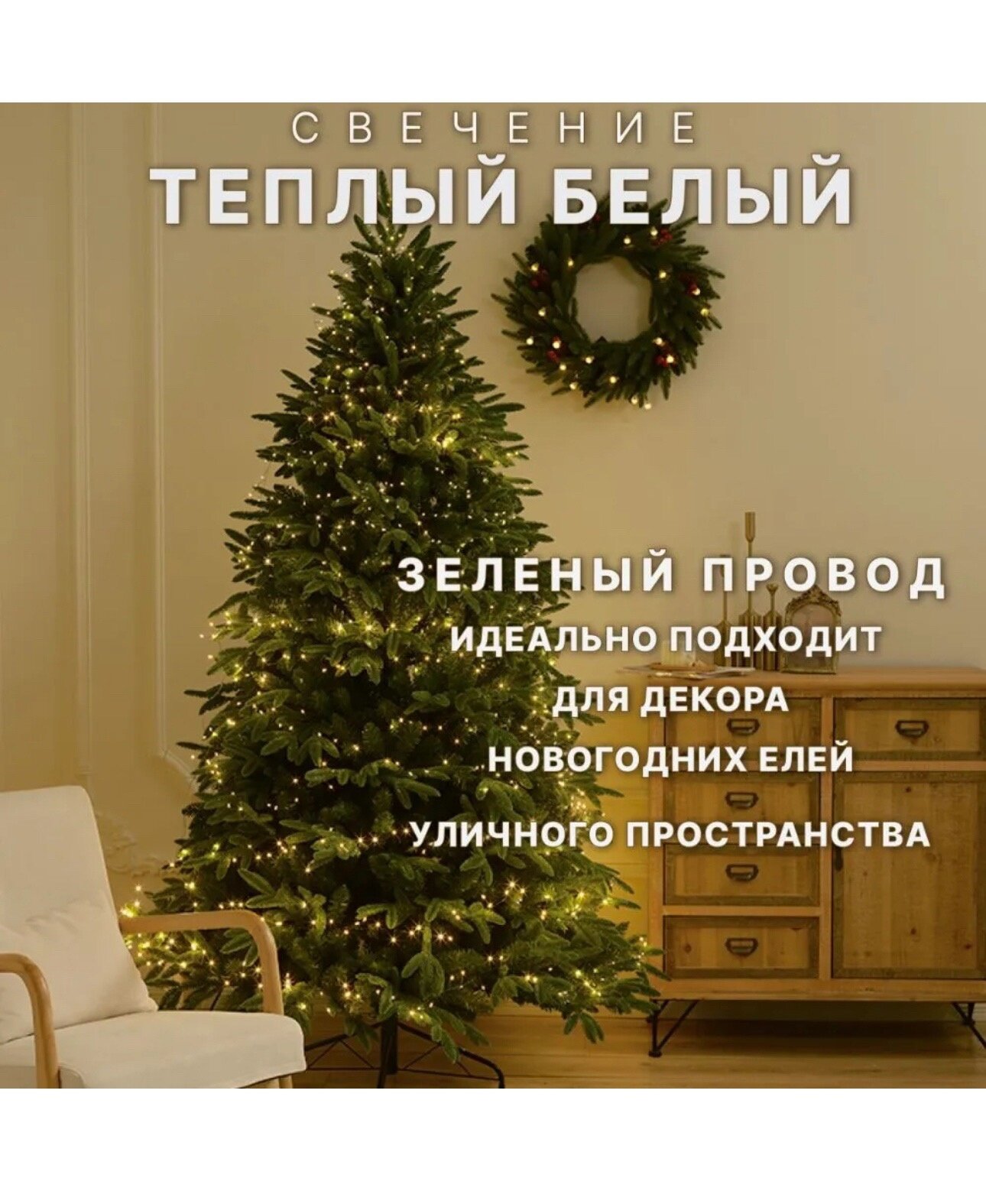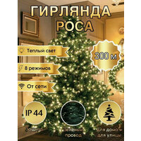 Купить Гирлянда Капли роса 300м теплый свет/ капли роса зеленый провод, от сети 8 режимов, с пультом управления с доставкой по всей России.