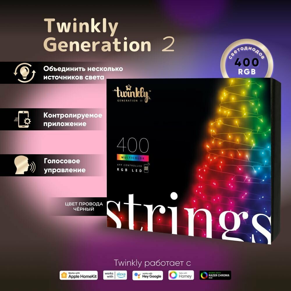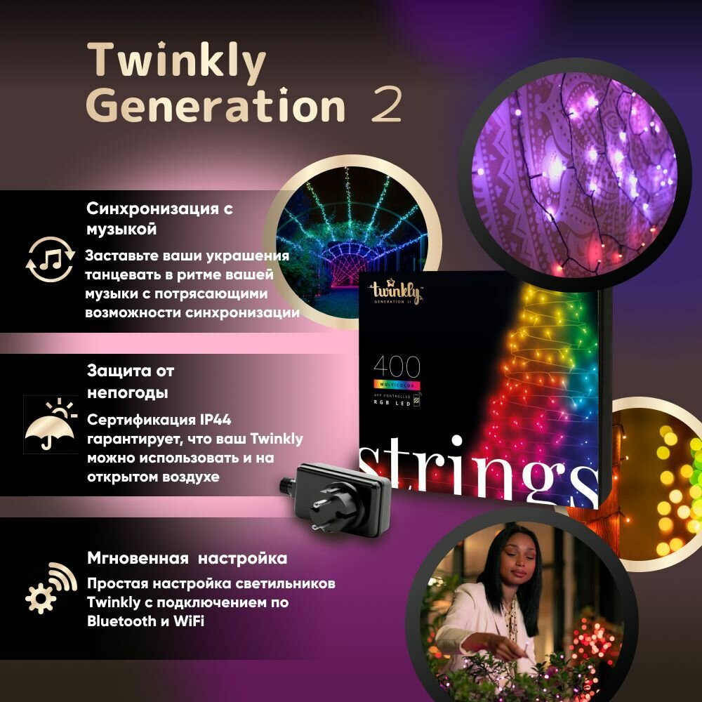 Гирлянда LED Twinkly Strings - 400 шт. (32 м) RGB + BT + Wi-Fi (TWS400STP-BEU) Generation II . Огни для елки - Огни, которые вам понравятся. Эти революционные светодиодные гирлянды привносят в наши дома уникальное световое оформление с использованием самых современных технологий. Светодиодное дерево — освещение управляется через мобильное приложение , совместимое как с Android, так и с iOS .