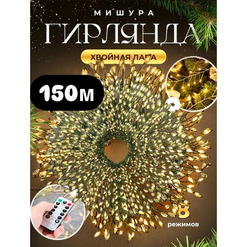 Особенностью данной гирлянды является ее длина - целых 150 метров! Это позволяет использовать ее для украшения больших пространств, создавая при этом эффект живой хвои.