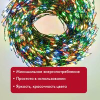 1152 разноцветных нано LED диодов очень красиво и ярко светятся. Имеет 8 режимов работы, которые регулируются контроллером. Цвет: мульти. Это энергосберегающая, безопасная гирлянда, которая не нагревается даже при длительной эксплуатации. Срок службы: до 50000 часов. Длина изделия: 23 метра. Питание: от сети 220 V. Сетевой шнур: 1 метр.