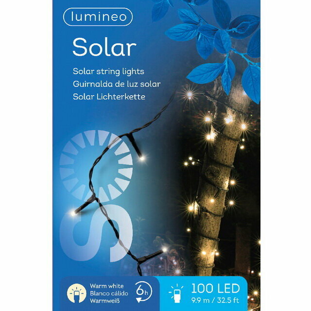 Купить Гирлянда на солнечной батарее Lumineo Solar Caro 9.9 м, 100 теплых белых LED ламп, черный ПВХ, контроллер, IP44, Kaemingk, 897782 с доставкой по всей России.