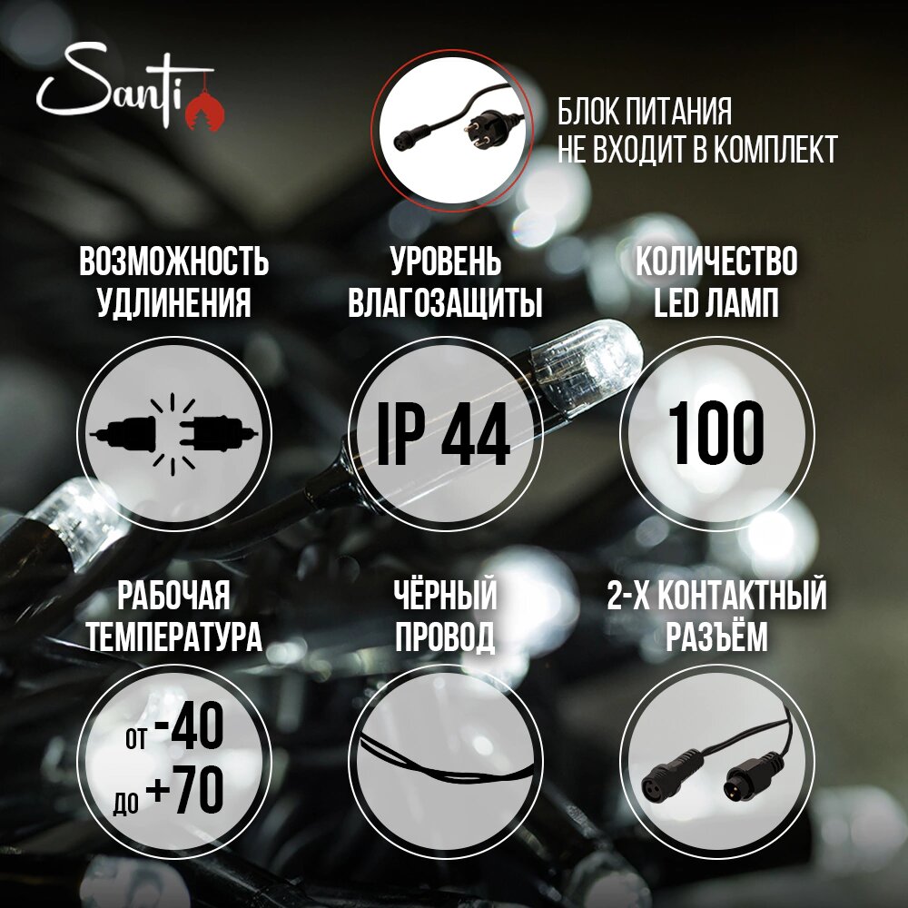 Купить Гирлянда Нить 100LED 10 м холодный белый свет, черный провод IP44 резина, статика Maxi LED STANDARD Santi с доставкой по всей России. Гирлянда Нить 100LED 10 м холодный белый свет, черный провод IP44 резина, статика Maxi LED STANDARD Santi: сравнение цен, характеристики, фото, актуальное наличие и цены.