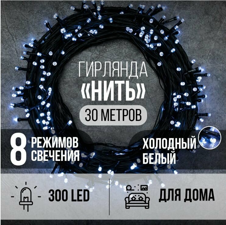 Купить Гирлянда Нить 300LED 30 м холодный белый свет, зеленый провод IP20 ПВХ, 8 функций с доставкой по всей России. Гирлянда Нить 300LED 30 м холодный белый свет, зеленый провод IP20 ПВХ, 8 функций: сравнение цен, характеристики, фото, актуальное наличие и цены.